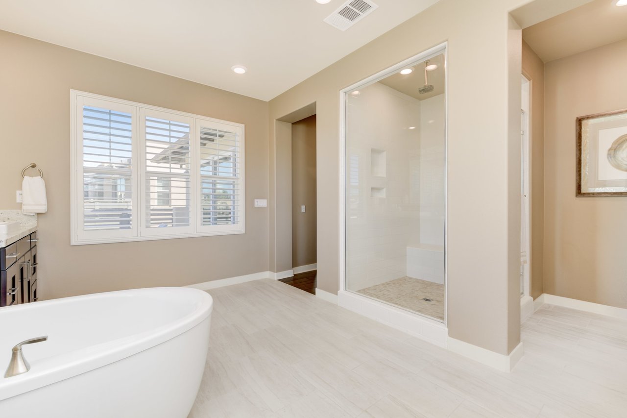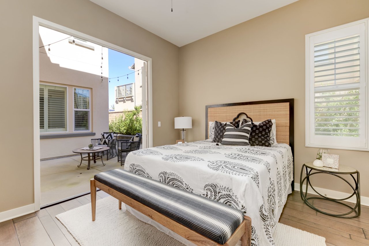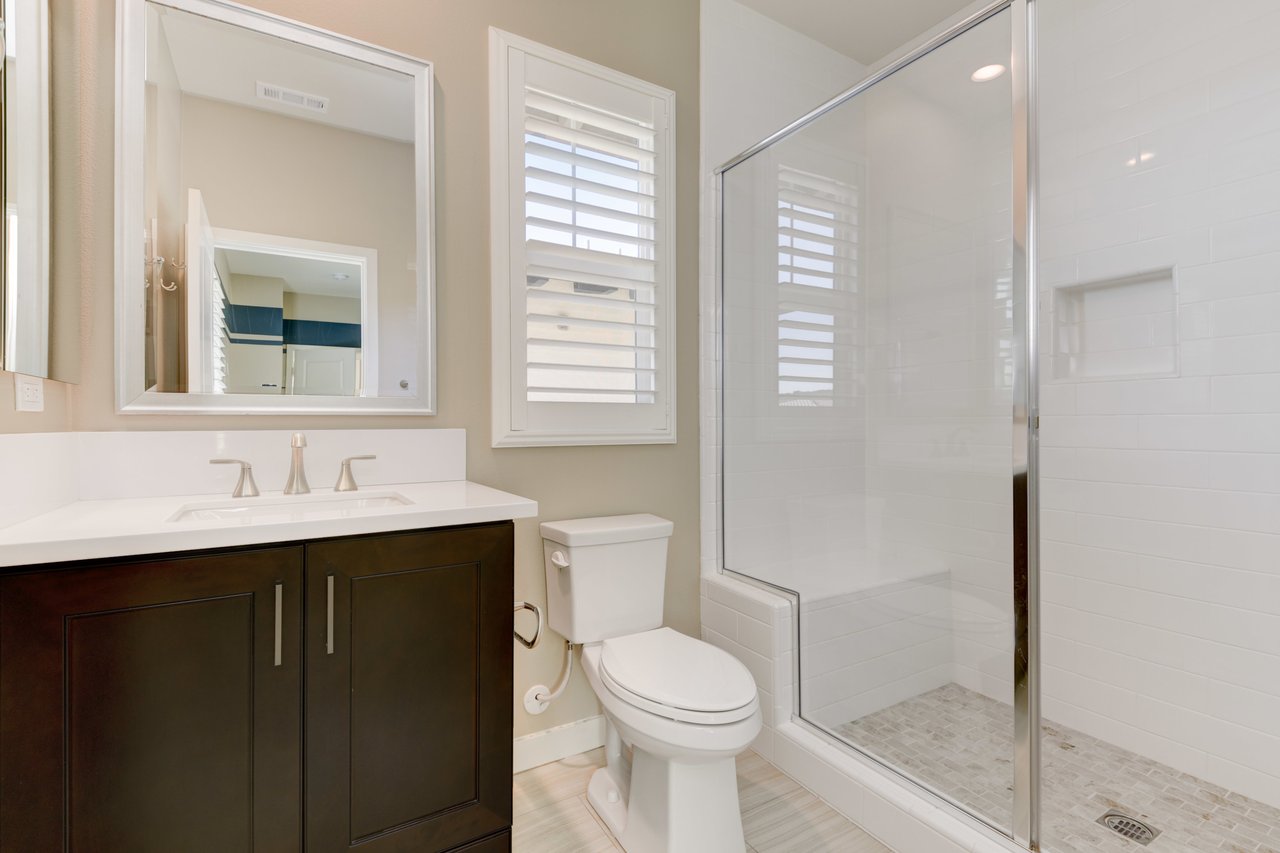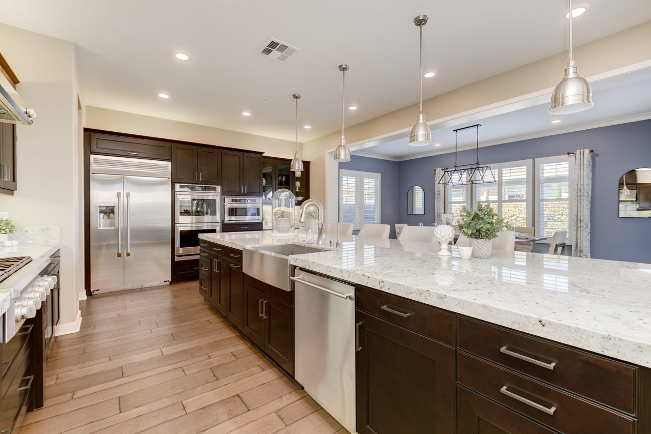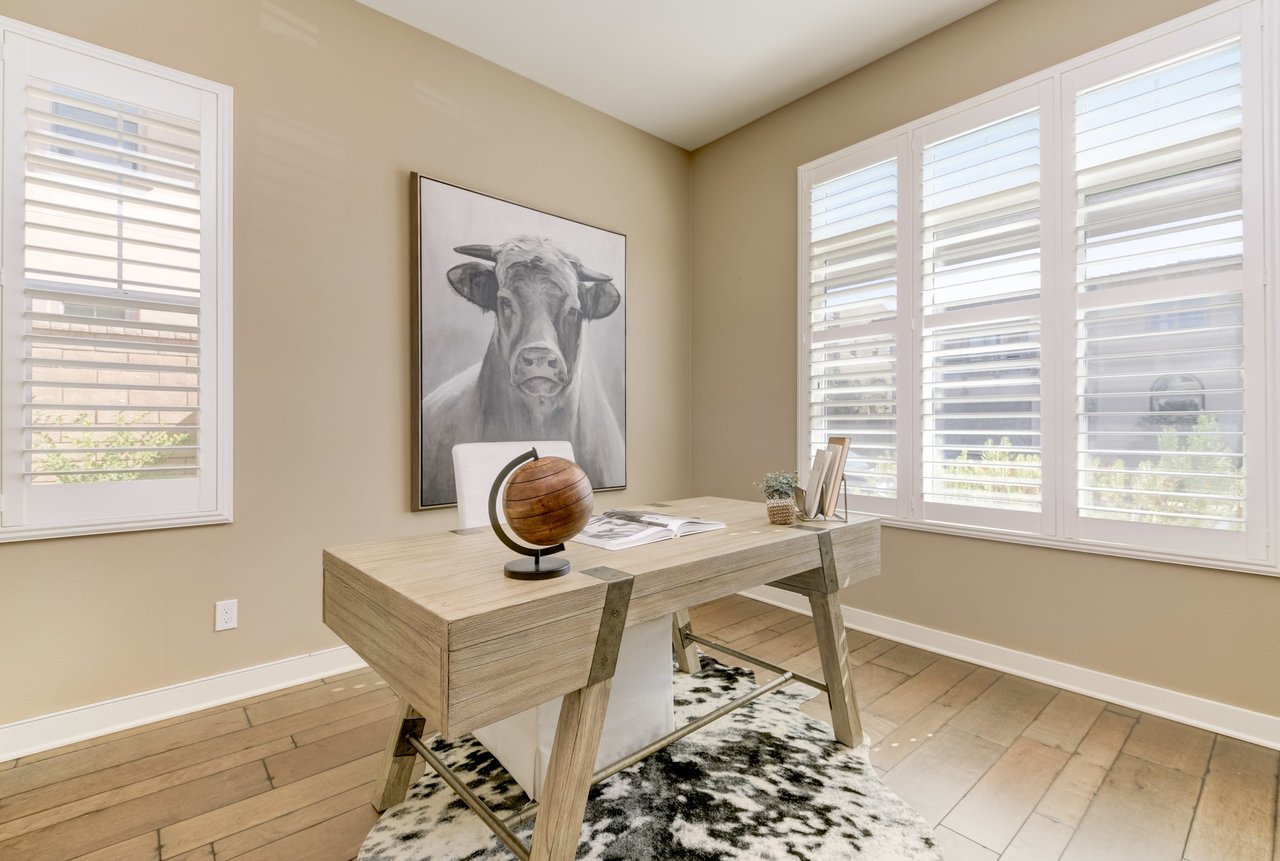 Gorgeous turn-key Sterling Home in Pacific Highlands Ranch. Walking distance to a planned community park and Del Mar School District elementary school opening in 2022. One of the only homes on this side of Elegante with no neighbor behind you! Amazing home upgrades include: desirable open floor plan, beautiful kitchen with granite countertops, GE Monogram appliances and soft close cabinets, custom wood floors, plantation shutters, owned solar, whole house fan, reverse osmosis system, water softener, central AC and heating, built-in surround sound in family and bonus living room, and two laundry rooms. In-law suite conveniently located downstairs along with upgraded office / kitchenette. Sliding glass doors in great room open up to backyard and California Room with TV and a fireplace - perfect for entertaining. Enjoy the built-in outdoor BBQ area, fire pit with seating and low maintenance backyard with fruit trees. You can even see hot air balloons fly by most evenings! 4 Bedrooms upstairs including a spacious bonus living room. Huge primary bedroom with views overlooking the community and park behind you! Amazing spacious walk-in primary closet with plush carpet and custom wood cabinets. 3 car garage with built-in storage racks and shelves, and a 240 volt outlet for electric vehicle charging. Walking distance to parks, trails and private Solterra Swim Club. Close to the Pacific Highlands Ranch Shopping Center (The Village) and the 56/5/15 freeways.